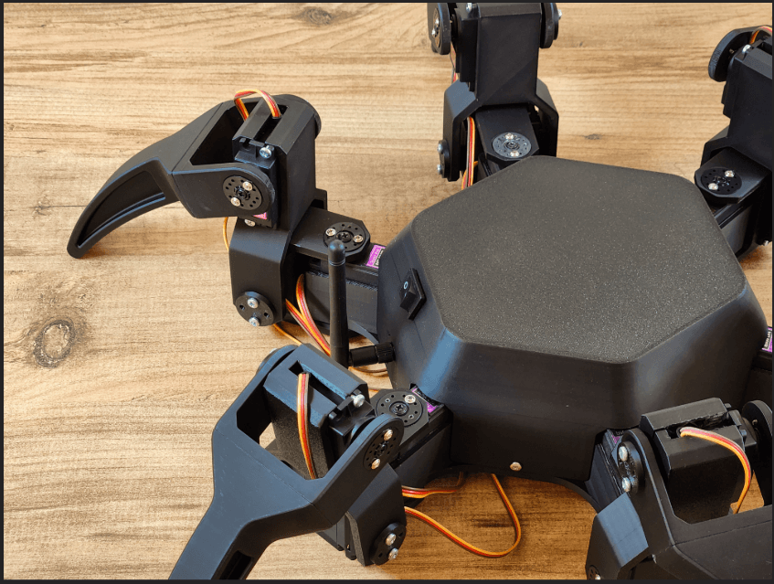- 18 DOF Kinematics: 3 active joints per leg allow for complex, lifelike terrain navigation.