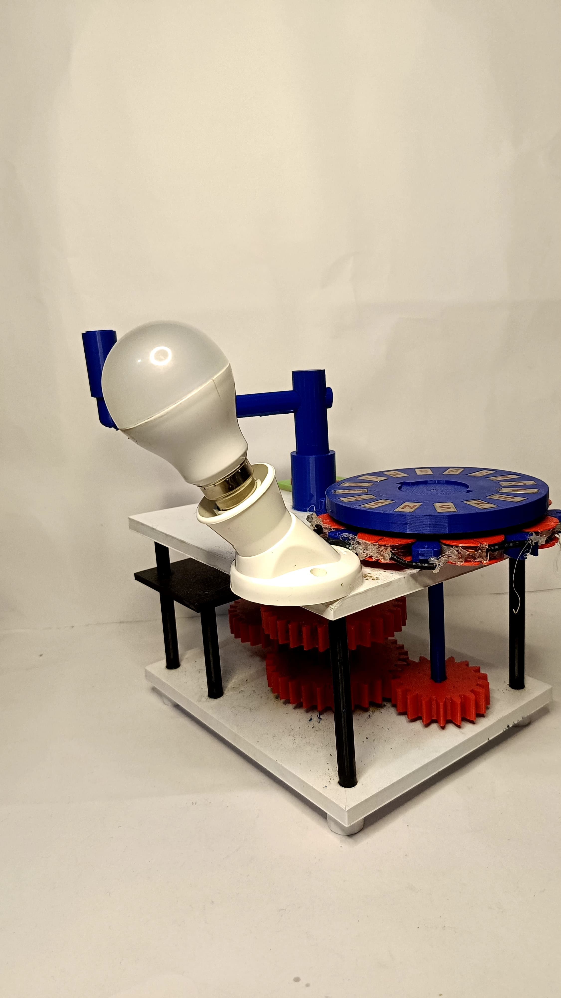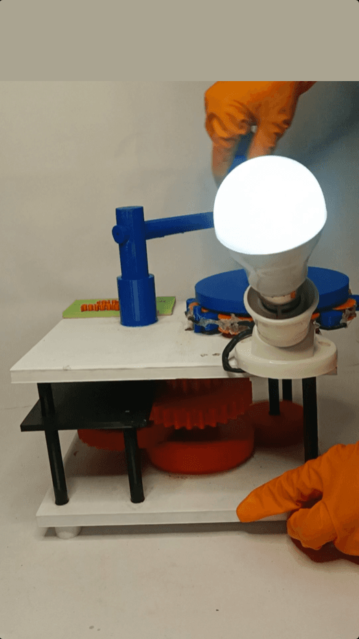 This device is a fully functional miniature power plant, not just a toy. It demonstrates how mechanical energy is converted into electrical energy using the exact same principles found in hydroelectric dams and wind turbines. Engineering Core: The model features a precision-engineered 4-Stage Compound Gear Train with a massive 22.5:1 ratio. This multiplies a comfortable human input of 60 RPM into a blazing 1,350 RPM at the generator core. +2 The Generator: Inside, an Axial Flux alternator uses 16 High-Grade N52 Neodymium Magnets spinning over 8 Copper Coils (approx. 1,800 total turns). This setup generates up to 14.4 Volts and 6 Watts of power, instantly lighting up the attached LED module. It is the perfect educational tool to demonstrate Faraday's Law, Torque, and Energy Conservation.